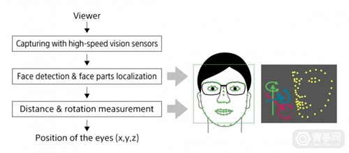 據(jù)悉,索尼高速視覺傳感器每幾秒捕捉一次圖像,用于檢測面部位置、眼睛和面部輪廓等特征,然后通過這些特征信息來預測人臉的3D形態(tài)、人臉的距離和方向、運動變化。